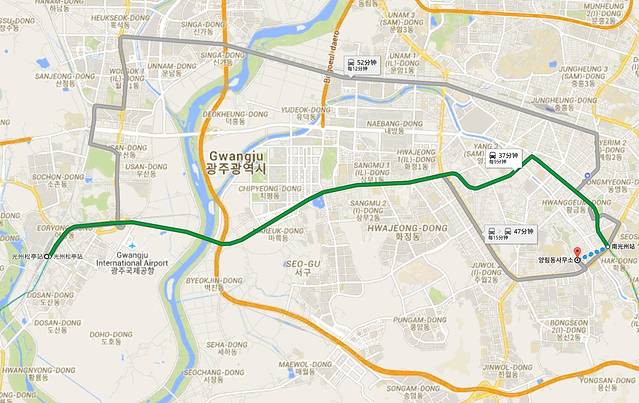 从KTX光州松亭站去杨林洞的方法有两个。一个是坐地铁1号线在南光州站下车后步行。还有一个是在农城站下坐巴士过去。具体请参考:https://goo.gl/maps/4i8JxcFAK8K2