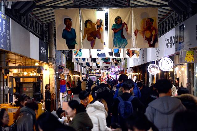 到了晚上肚子饿了就来大仁艺术市场吧。这是光州第一号夜市,因为它的名气先后又出现了其他的夜市,大仁市场就是这么有名了。