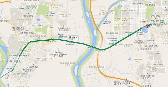 在KTX光州松亭站坐地铁1号线在云泉站下车后从2号出口出去后步行就能到了哦。需时约30分钟,费用是1250元韩币。具体详参:https://goo.gl/maps/2uynydtdWtR2