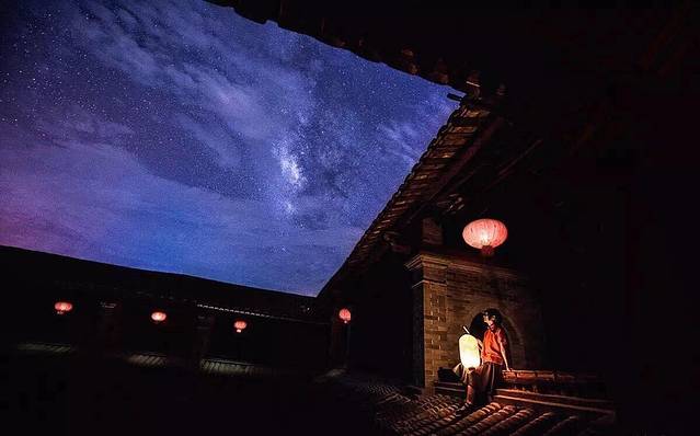 去年热播的《大鱼海棠》影片中画面美得令人窒息,这场景原型就是福建永定客家土楼,《大鱼海棠》的作者曾经说过,“中国福建的土楼有一种梦一样的神秘感,像是来自世外桃源。”黑夜,总能给人无限的想象力,土楼的夜深邃而神秘,夜不醉人,而人自醉。灯光映衬,绿叶成诗,仿佛一切都是那么的浑然天成,星星点点的灯光温馨而美丽。土楼的夜空,星星在空中闪烁着,那是银河的轨道,是宇宙的浩瀚。这里的星空繁星满天,在那喧闹的城市了,或许已是令人久违了吧!