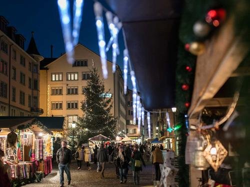 在苏黎世要度过一个最欢乐的圣诞,你的开始很重要。所以我们会首推世界上最著名的Bahnhofstrasse大街。这里是圣诞的聚焦点,也是大部分市民庆祝圣诞时刻最重要的一个场所,在Bahnhofstrasse大街你能感受到什么叫欢乐和分享的精神。Bahnhofstrasse大街圣诞节星光熠熠,从中央火车站一路向东眼神高苏黎世湖畔。街道两旁圣诞树水晶超市超过5000多个,而且购物街和庆祝活动会在一个月前就开始。