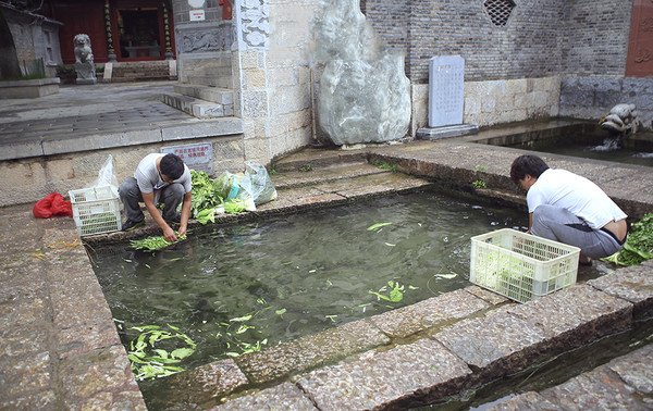 这种能在河里直接洗菜的地方不多见了,如果在上海的河里洗菜,哈哈,那是奇迹。