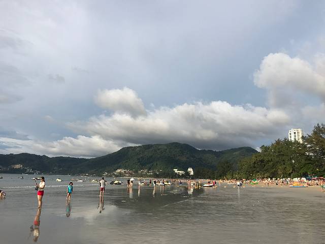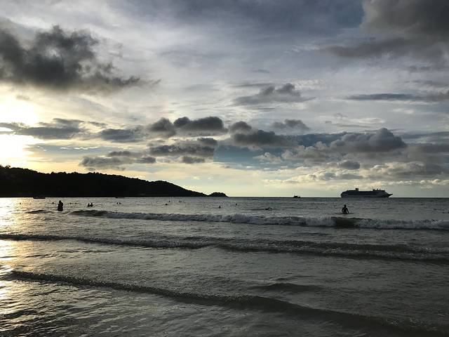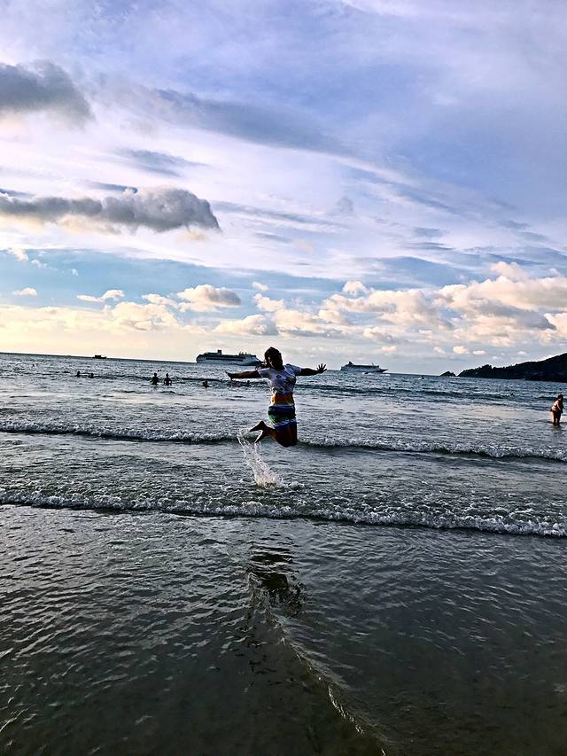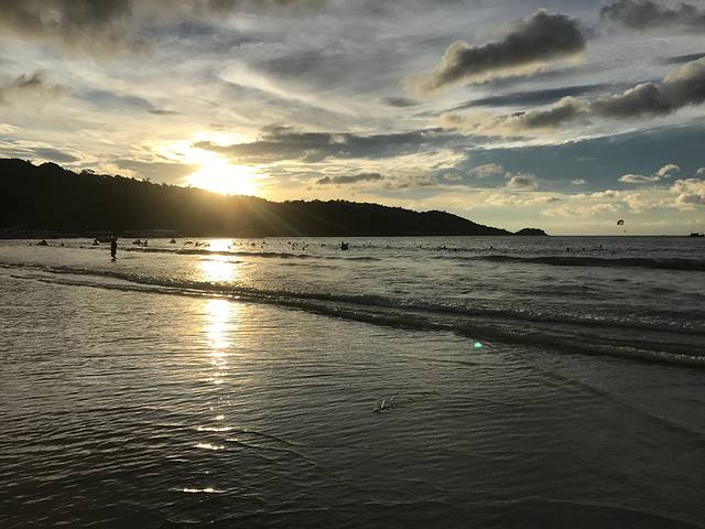 那天天气不是很好,半边夕阳半边阴云。芭东海滩跟其他海滩相比,水质差远了,沙也没那么细,环境也相对没那么好,而且比较嘈杂一些。不过玩玩水,挖挖沙还是很不错的。