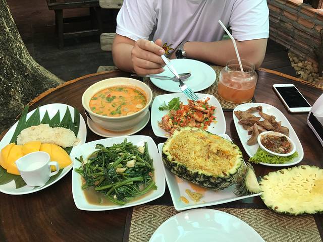 餐厅的风格还是很棒的,很清新,不过网红嘛,所以都是中国人。服务员也都会简单的中文。菜还可以的,芒果饭好吃,冬阴功汤也不错,强烈推荐的是青芒汁!