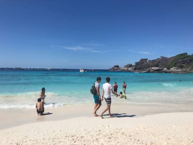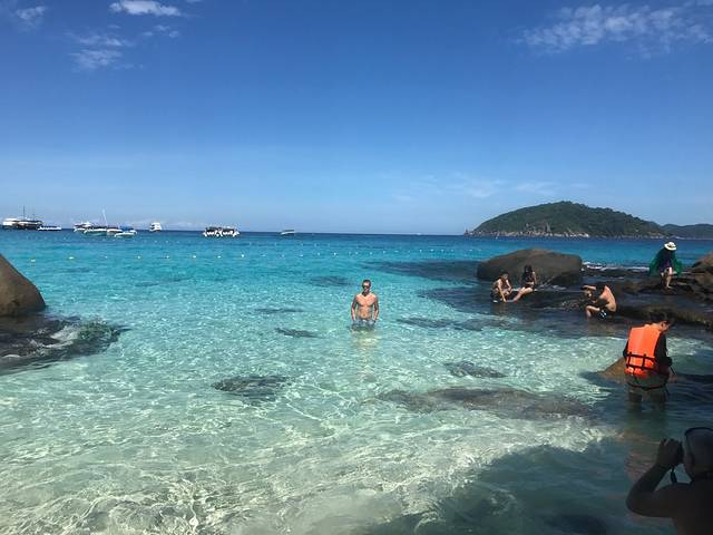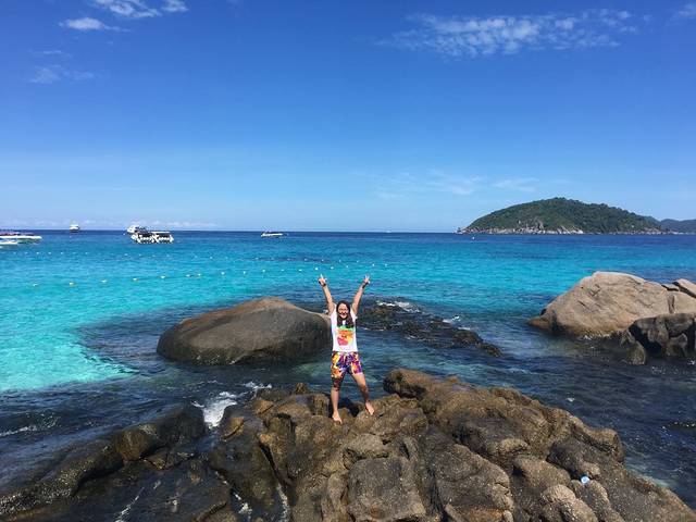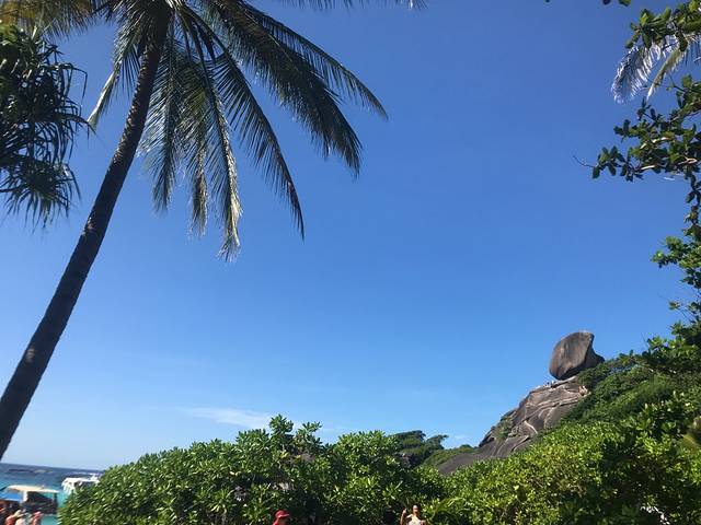 斯米兰岛的行程累主要是因为他很远,早上6点多到酒店来接,算上沿途接人,要两个小时的车程才到码头。码头有简单的早餐点心,吃完上船,上船开始,鞋子就收掉了,所以整个行程是不能穿鞋的,岛上有小山,可以攀登的岩石,建议大家准备浮潜袜,不然太阳把岩石晒的很烫,直接踩上去会很痛。船上两个小时不到的路程,到第一座岛屿浮潜!一整天,除了吃饭,基本都在船上或者水里,一直在晃!从上车,开始,一整天,除了登岛那一两个小时,你都在晃,好多人身体素质不太好的,从头吐到尾,简直活受罪,船上会发晕车药,但好像收效甚微。