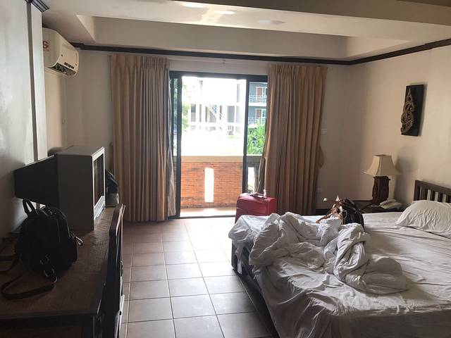 首先,位置我们喜欢。门口就是海!绝对海景酒店!每天站在房间的阳台上就能看到美美的大海,金灿灿的夕阳。傍晚,我们俩就喜欢坐在阳台上,看看落日,吃吃零食,享受惬意的时光。但是,他并不是在海滩的正中间,而在月牙形海滩的尾巴处,有些人会觉得他有点偏,但是我们很喜欢,因为中心地段很商业,很喧闹,尤其是靠近酒吧街那边。这边相对安静一些,所以中国人很少,大都是外国人!这边离酒吧街很近,走走就到了,而且因为我们租了摩托车,出行很方便。