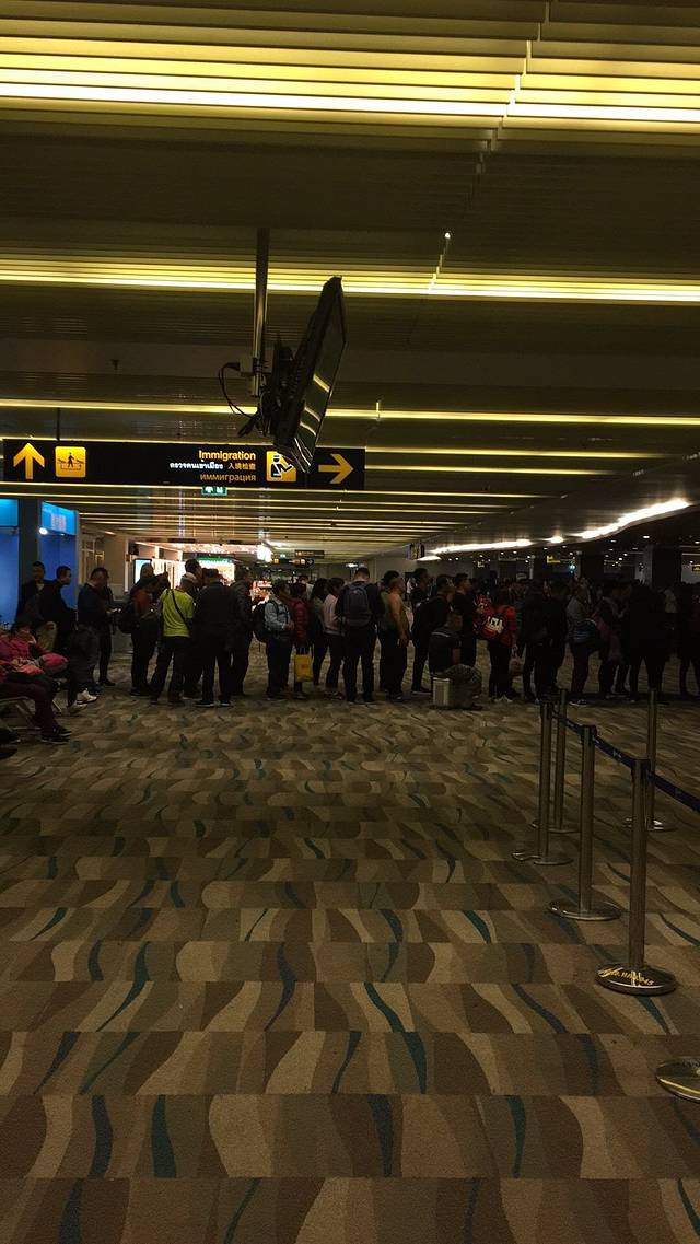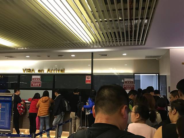 有签证的小伙伴直接往前走入境就好了,落地签的小伙伴下飞机后赶紧跑,因为办落地签的人很多,填表,交表,入境,都要排队。一进大厅就会发现很多人俯在桌上填表格,挤进去,看看桌上有没有空白的表格,有就拿着开始填,多找几张桌子肯定有,工作人员发不过来,要自己找。
