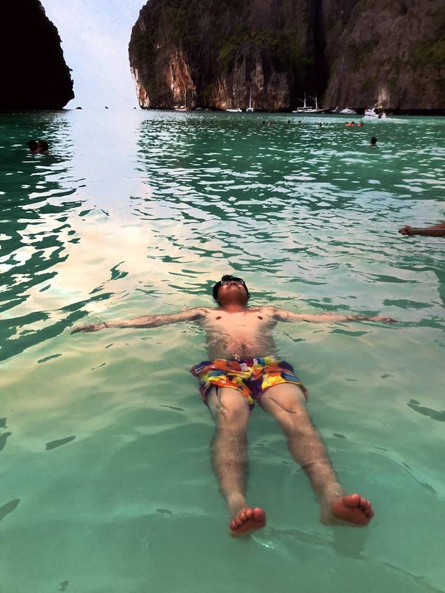 旱鸭子们的福利啊,保持平躺的状态,在水里是不会沉下去的!爽!