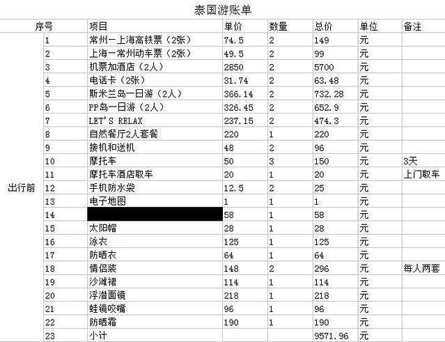 列了一大张带去的生活品清单,我一般出门喜欢自己带常用的生活品,所以带的比较多。不过要提醒各位,牙刷牙膏毛巾拖鞋最好自己带,泰国的部分酒店是不提供这些私人物品的,或者去了买也可以。不过去买的同学要注意,先查一下,毕竟人家的物品上面没有中文和英文。我们第一晚过渡的精品酒店就没有提供,后面的星级酒店就有。仅供大家参考。