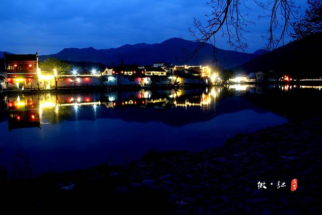 收拾停当,迫不及待赶来月沼。天色将晚,月沼静静无痕。周边客栈挑灯,水岸灯火相应,绝美!