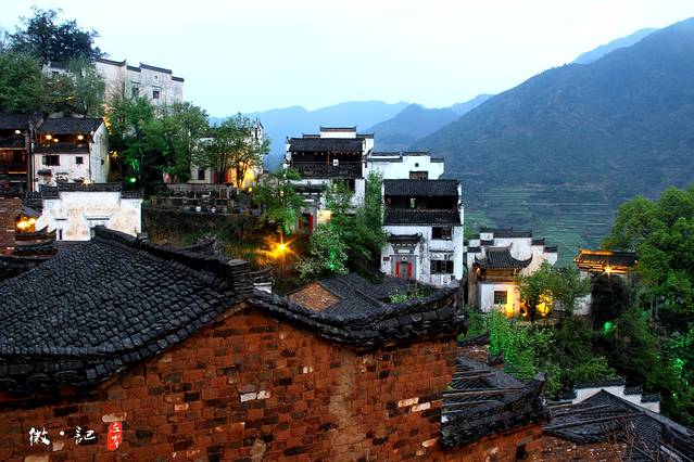傍晚的篁岭,夕阳已落,山风乍起,吹落薄云。山上的古村,在山风中渐渐静谧……