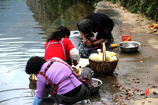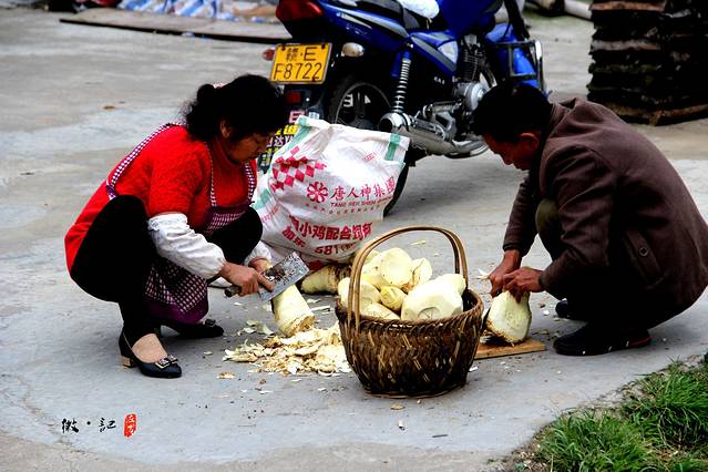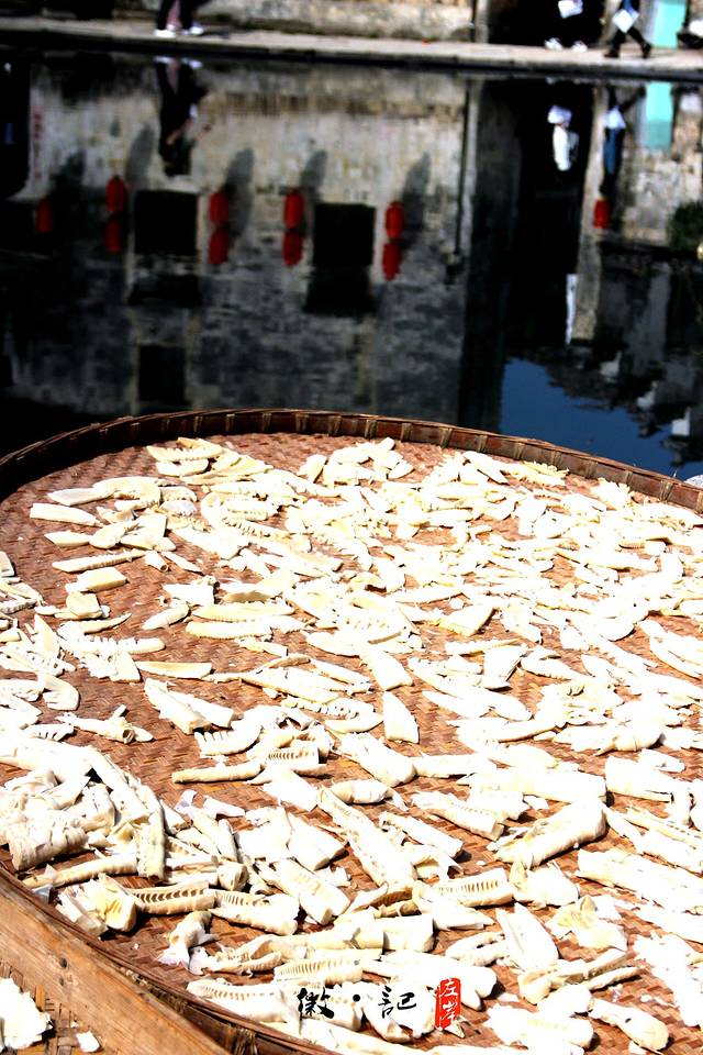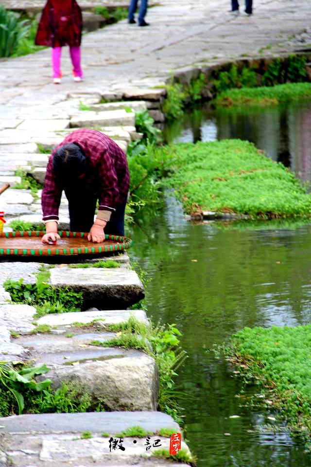 村口一汪潭水,有村民正洗着新鲜的竹笋,清风徐来,涟漪阵阵。