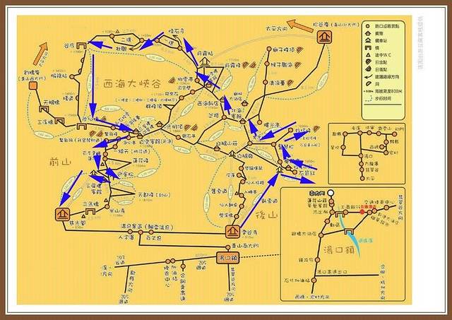 (登山路线见图,由于带着孩子,光明顶和天都峰都没去,西海大峡谷坐的地轨,上山下山皆索道)