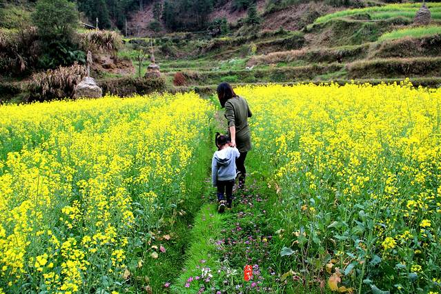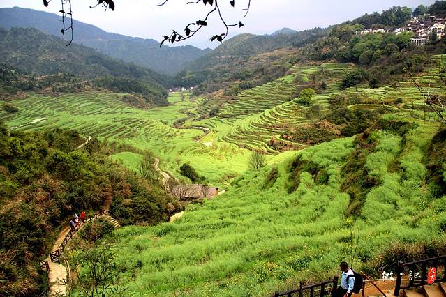 提前租好的车,本打算直接先去江岭的,都说江岭是婺源最值得去的地方,油菜花呈梯田状,从山顶铺散到山谷下。高处俯视甚是壮观。好多出彩的片子也是在江岭这边出的。