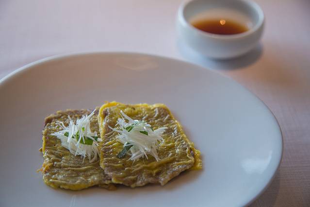 肉饼无功无过,夹起来包着葱丝,沾鱼露食用。