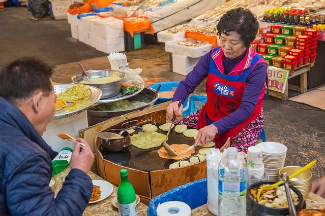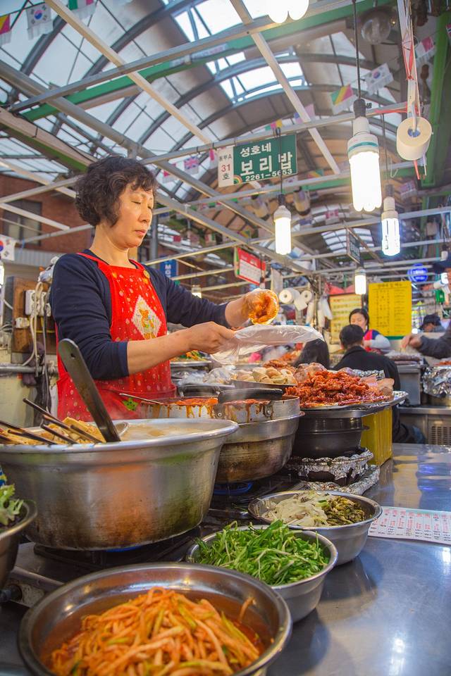 感觉广臧市场是一个氛围远大于味道的地方,我能理解游客们会只为了体验这种热闹的氛围专门来这里,但同样随处可见的当地人在这里吃饭是个什么情况呢?难道这里的食物真的是韩国的传统味道么,这么看的话韩餐别说和中国菜比了,只和临近的东北菜比都比不过啊...