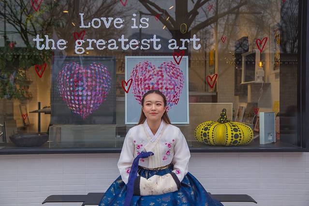 店里韩服很多,但好看的也就几件,妹妹穿着还挺好看。几年前还是那个顶着蘑菇头,穿着学校校服的小姑娘,现在转眼也长大了,有大姑娘样子了。