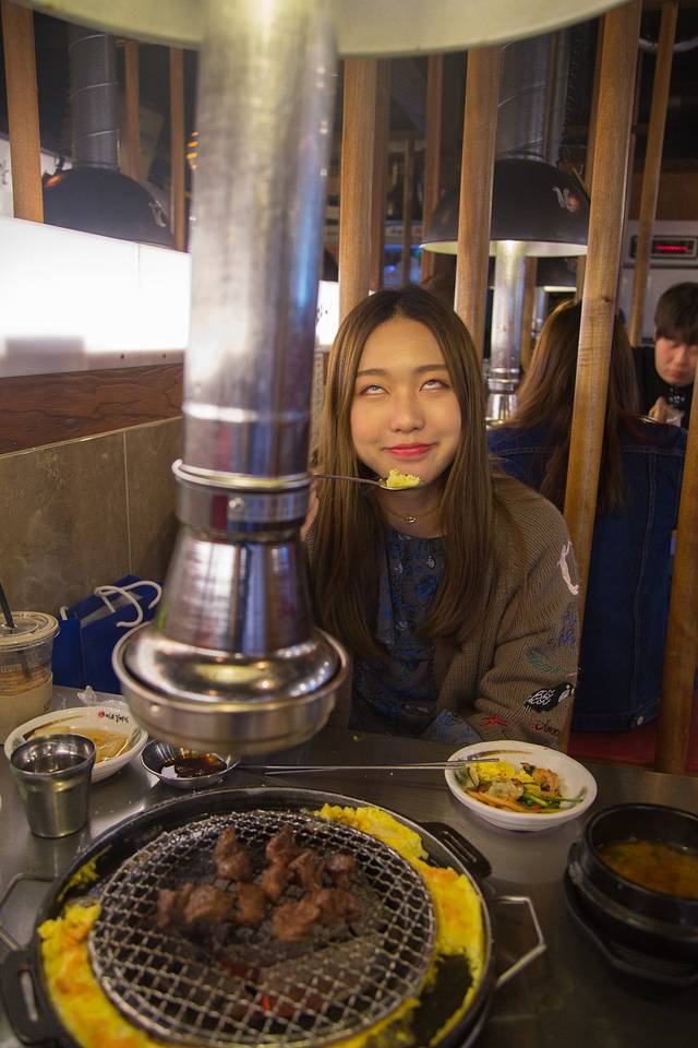 位置就在弘大最热闹的那条街上,进店店员小哥非常热情,上菜速度也很快,就是烤肉真的很一般... 五花肉看起来很新鲜,但是吃到嘴里有很浓的肉腥味;调味牛排也有些过于甜了,而且每道肉的分量都非常少,本来想点两盘肉先吃着等吃完再续的我们,勉强吃完以后匆匆结账走人了。