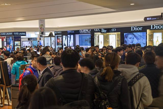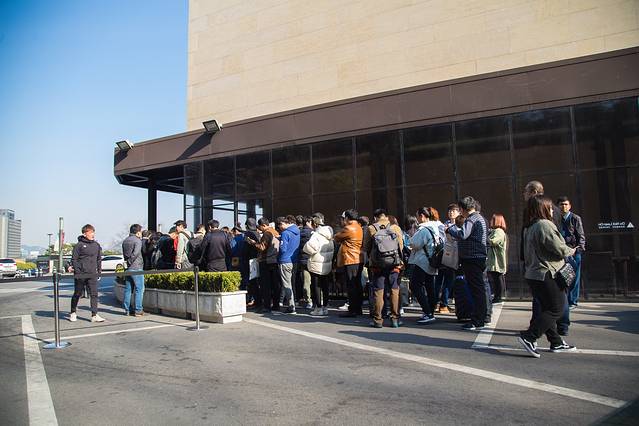 之前只去过机场的免税店,到了首尔的免税店之后简直吓我一跳,怎么这么多人!离开门还有20分钟的时间,队伍已经排到了拐弯之后。司机跟我们说,这帮人都是代购的。