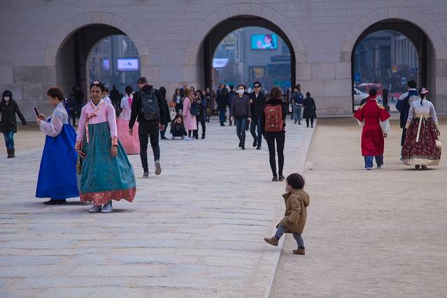 不过租一身韩服在景福宫拍拍照还不错,穿着韩服可以免费进入景福宫,避开中线的人群,两侧的长廊是拍照的好地方。