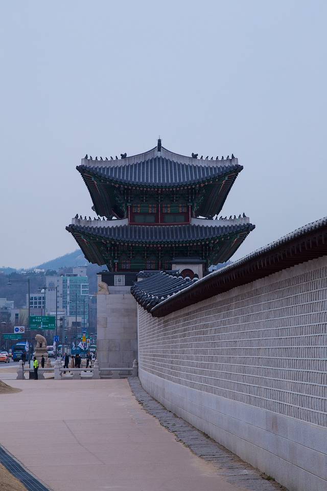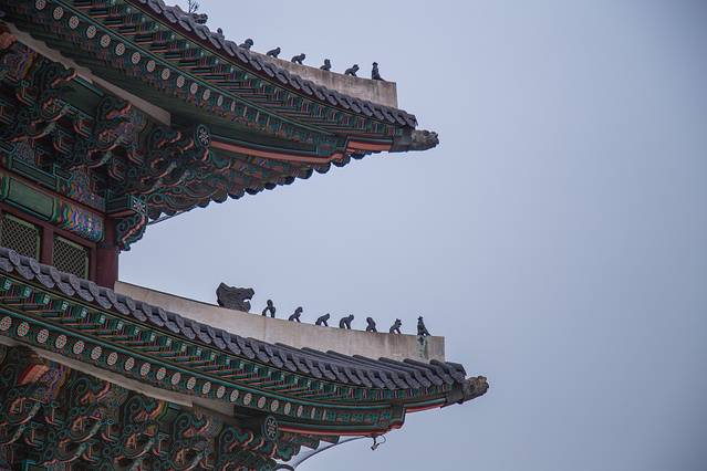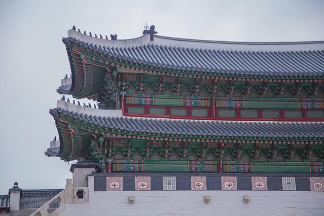 景福宫虽然没什么可欣赏的,照相倒是一个很不错的地方,游客都集中在中线的宫殿附近,周围两侧的长廊一个人没有,非常适合照相。
