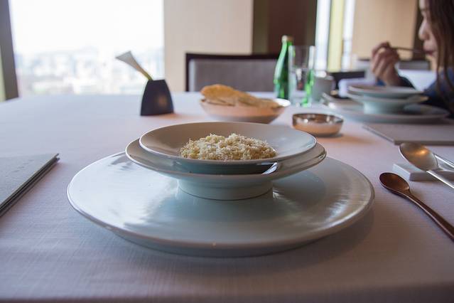 相对罗宴,这家餐厅亲切了很多,属于那种位于居民区附近,略商务的一家餐厅。餐桌很有意思,是在普通的桌子上每位客人面前再放上一个小桌,有趣是有趣,就是吃饭要把上身探出来很多。