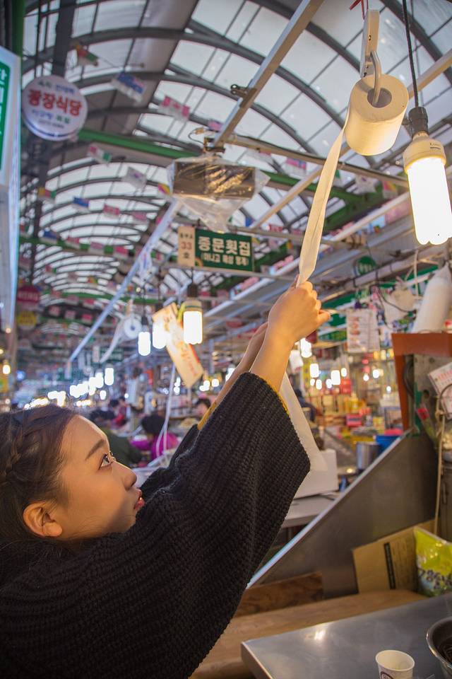 之前对广臧市场完全没有印象,只是看了很多人的游记,感觉是个特别接地气而且有氛围的地方,大家坐在一个一个摊位前面品尝着首尔的小吃。从景福宫出来一直往东走,20多分钟就到达了广臧广场,从外面看有点破破烂烂的,不过无所谓,好吃就行。