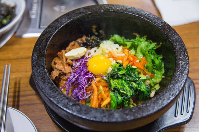 全州中央会馆是妹妹坚持要去的一家,就在明洞附近,正好逛完街中午去吃饭,顺便休息休息。菜单的种类不多,我选的招牌石锅拌饭,味道还不错。不过始终感觉类似石锅拌饭,冷面,饺子这样的食物,味道的天花板比较低,换句话说,再好吃也好吃不到哪去,无非就是蔬菜米饭和酱汁混在一起么。