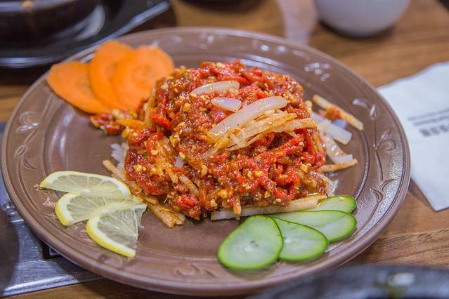生拌牛肉甜辣酱放的太多,已经几乎吃不出肉味了,全是甜辣酱的味道。