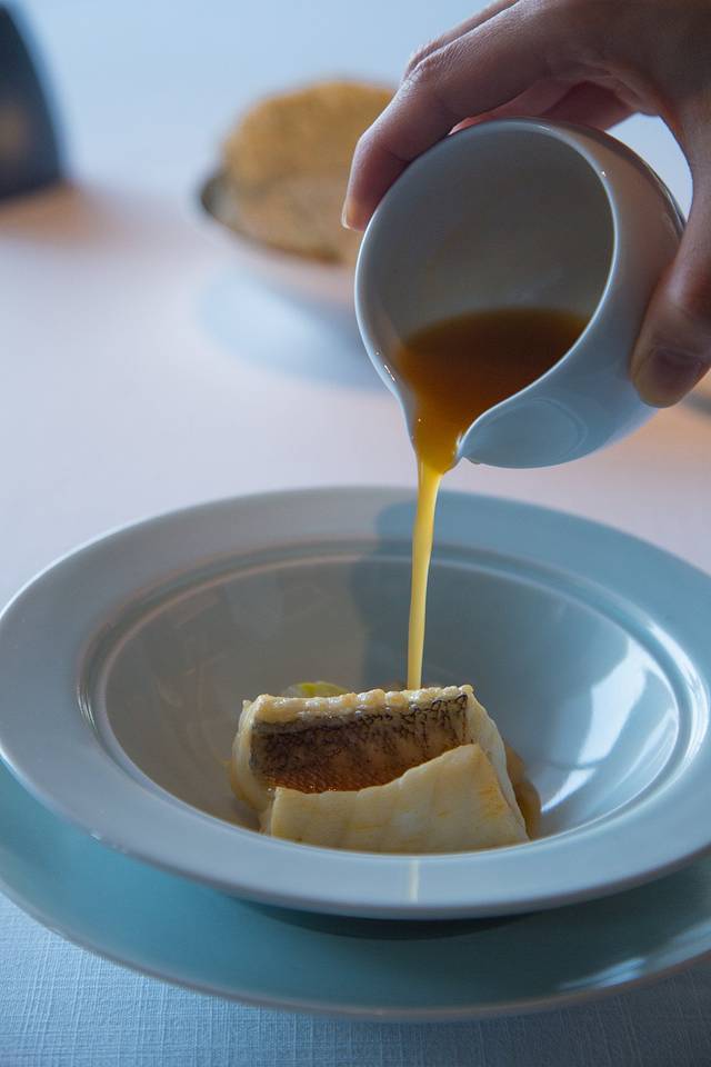 辣焖方头鱼又是一道很赏心悦目的菜肴,方头鱼端到面前之后,服务员现场浇下汤汁,完成之后简直像一幅艺术品。服务员强调汤汁味道会很辣,但其实只是微微辣,方头鱼之前没有吃过,肉质很嫩。