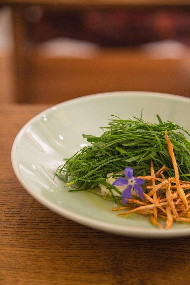 作为肉食动物,很难客观的评价一家斋饭餐厅,首先餐厅位置不太好找,进入餐厅的电梯隐藏在一家佛教书店里,我们在外面绕了半天才找到。餐厅环境完全 看不出来是一家米其林星级餐厅,普通的装修,很久没有收拾的卫生间... 菜的味道也很奇怪,没有一道可以打动我们两个人,一些食材的选择也很奇怪,嚼不动的叶子,苦到极致的泡菜,之所以被评成米其林一星,我感觉是评委比较欣赏这家餐厅对于素食理念的追求吧。