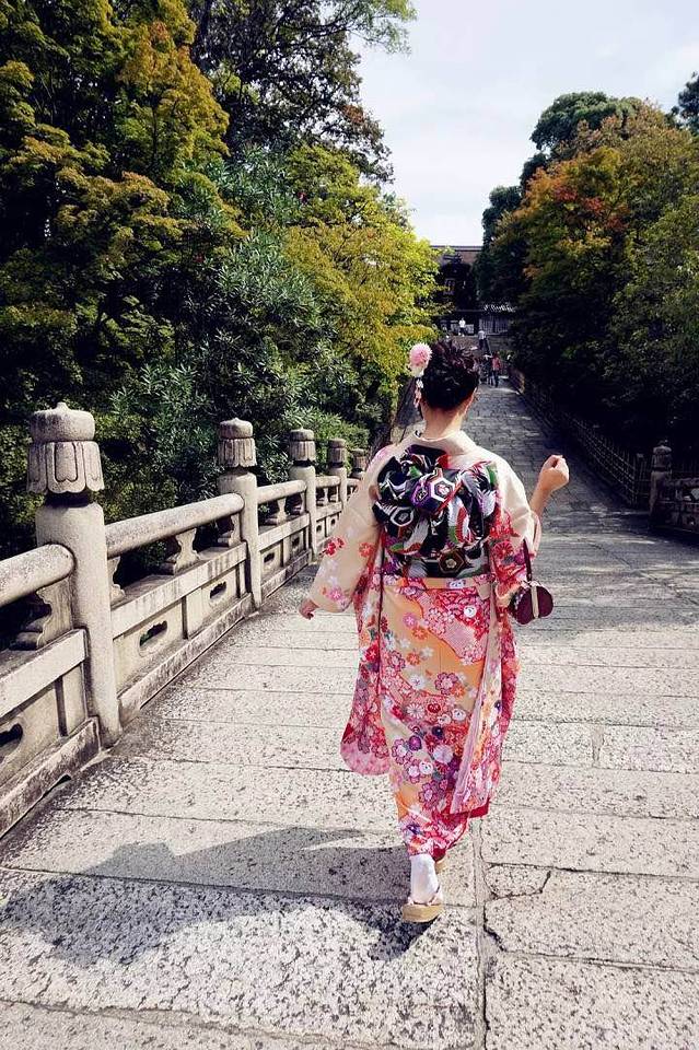 在京都,穿和服出行不论选择哪种交通方式,都不会显得突兀,因为京都本地的少女也会经常穿着和服出门,如果真的有人回头多看你几眼,非常有可能是外来游客并且被你的这一身装扮所吸引。