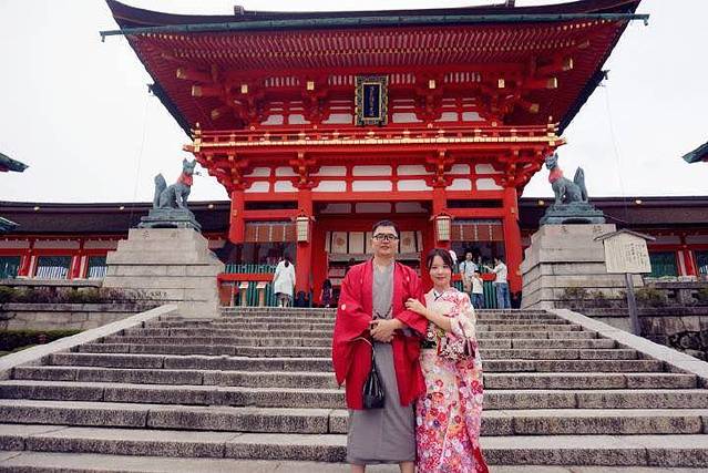 预定好了和服体验的日期以及到店时间,到了日起直接去就可以了,非常省心,而且事实证明确定好时间到店之后,直接可以被安排换衣化妆。富士和服租赁店内干净明亮,服务人员全程微笑服务,最值得一提的是,和服穿着师傅们的手法非常的娴熟,一层一层的叠加,固定的很结实却又不会让人有被束缚的感觉,身后腰封上的花是最能体现出一个和服师傅手艺好坏的地方。很多和服店的客片我也欣赏过,腰封的花千篇一律不说,感觉持久度并不算太好。但富士和服作出的所有造型,直到我到店归还服装的时候还是刚做好的样子,这一点非常满意。下面放上我和男朋友在京都逛吃一天拍摄的照片。