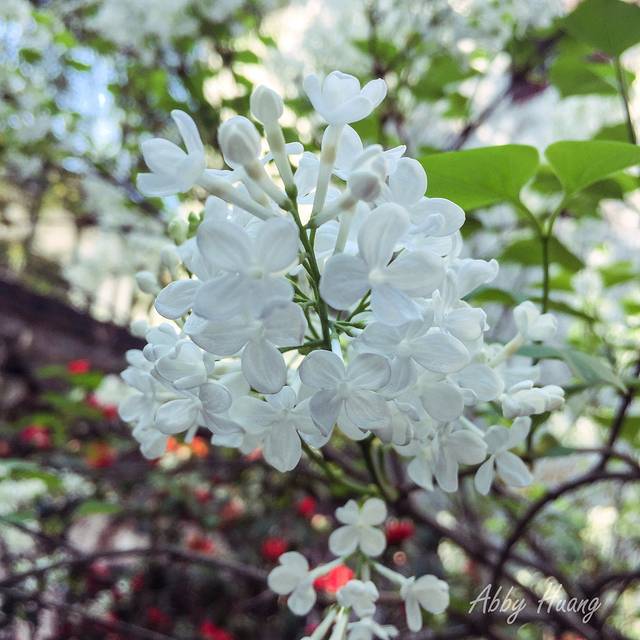 一入园便被一股清香吸引了过来,墙角里一簇白色小花儿伸展着枝干,听旁边的游客说这便是丁香花