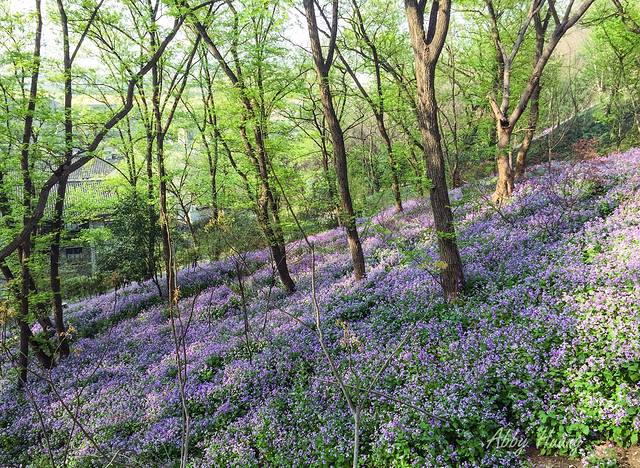 继续往上走,遇见了漫山遍野的二月兰,真是个意外的收获