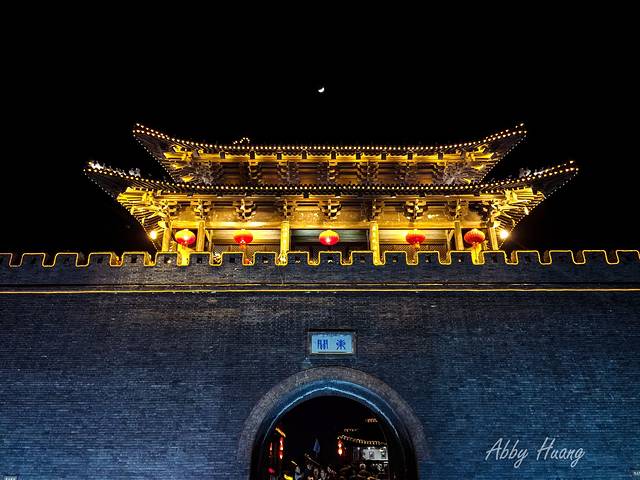 走出东关街回看门楼,月牙正好悬挂在正中央