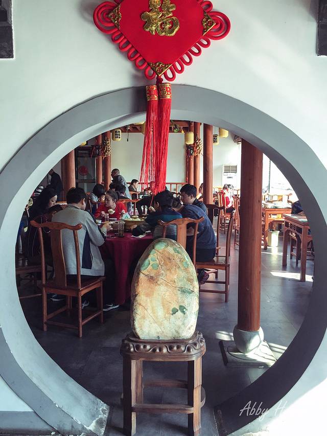本打算早起去瘦西湖,怎奈磨磨蹭蹭竟九点多才出酒店。退房后出门发现隔壁有家餐厅,便进入寻早点。餐厅的装潢古色古香,座无虚席,看来没有选错地方