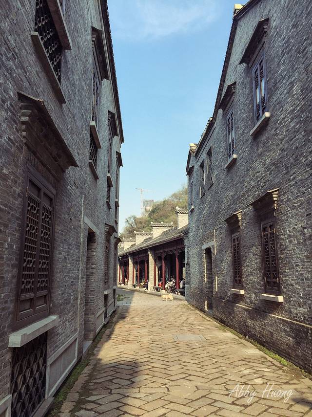 继续在小巷里穿梭,遇到这样一栋建筑,有着形似徽派建筑的高墙头,但整体线条以直线为主,更加棱角分明