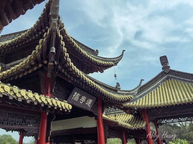 五亭桥上视野相当宽广,微风吹过,屋檐上的铃铛叮当作响