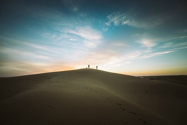 8月中至9月底气候温和,是涉足沙漠的最佳季节。如果在下雨或雨后去,沙丘是不会发出响声的。最佳穿越时间是每年的5、6、9、10月。