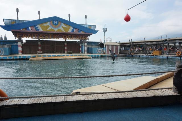 到岛上直接去换下午1:30分的海豚表演,首先出场的是海豚,六只小海豚很是卖力的表演着,一会翻转跳跃,一会顶球