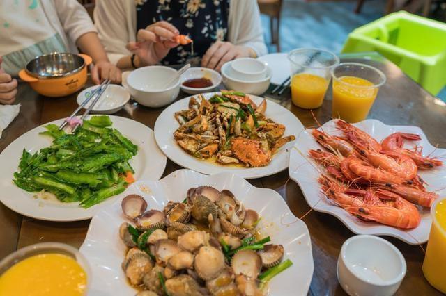 等啊等,等了好久,终于等到我们的大餐啦~!~!有大虾,四角豆、鸡腿螺、和乐蟹、椰子饭、海胆蒸蛋等~~!~我都爱吃,不挑食~!~!上来一盘就扫光一盘。。。都来不及不及拍照哈