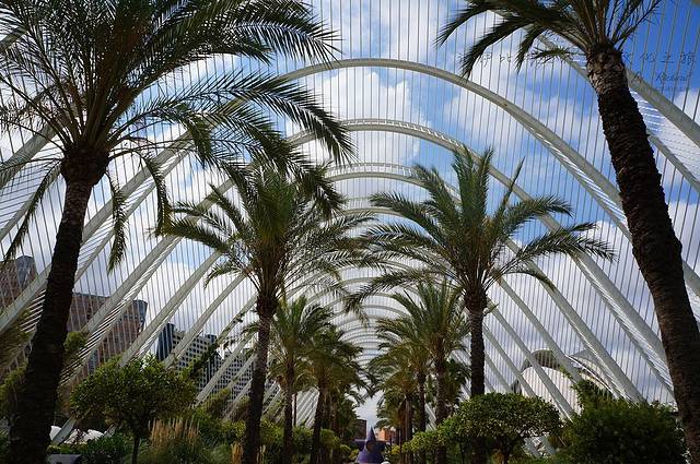 瓦伦西亚的科学艺术城是一片精彩绝伦的建筑群,主要由索非亚皇后剧院、费利佩王子科学博物馆、半球形的IMAX影院、还有一个海洋馆和堤坝大桥组成的。艺术科学城是来瓦伦西亚游玩不可错过的一站,这些建筑群的建筑被人称为外星建筑,设计巧妙。