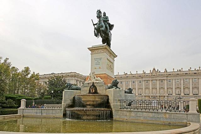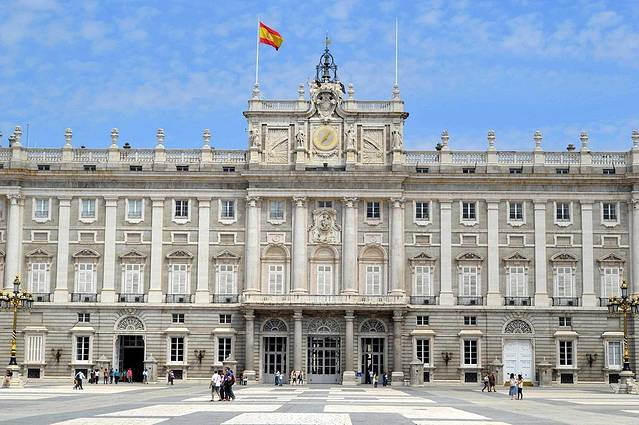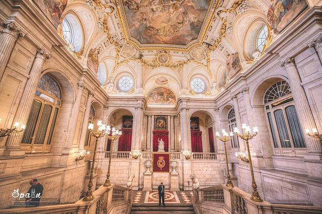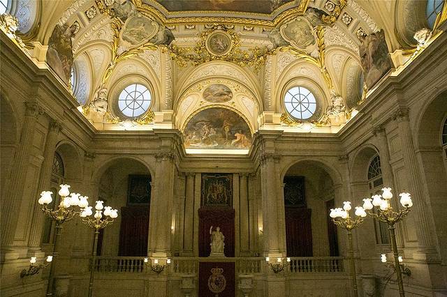 马德里皇宫(Palacio Real)是欧洲第三大皇宫,仅次于巴黎的凡尔赛宫和维也纳的皇宫,是世界上保存最完整且精美的宫殿之一。它建于十八世纪中叶加尔罗斯三世,是波尔梦王朝代表性的文化遗迹。皇宫外观呈正方形结构,每边长180 米,外观具有卢浮宫的建筑美,内部装潢则采用意大利的风格,富丽堂皇。宫殿内藏有无数的金银器皿和绘画、瓷器、壁毯以及其他皇室用品。现在皇宫属于国家遗产,已经辟为博物馆供游人参观,只有在官方正式接见时才会由国王使用。