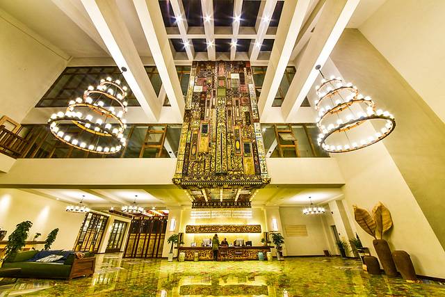 与其他高端酒店一样,大厅的灯光设计采取了暖色基调并融合了中西方的建筑艺术,在风水设计这一块更是小牛试刀。