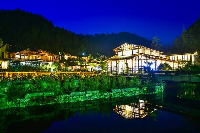 在夜色下,清溪峡山庄的唯美与大气相结合形成了令人耳目一新的感觉。您喜欢这样的感觉吗?