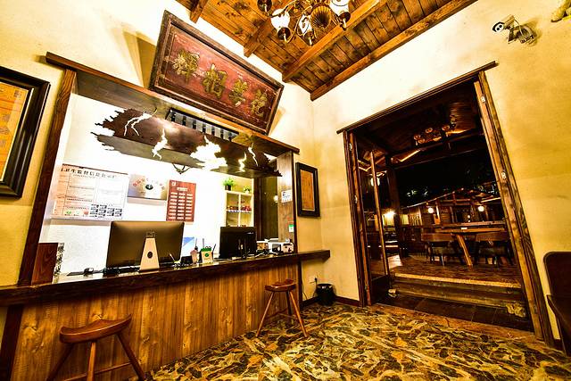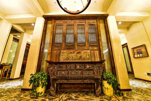 在大厅里面给山野君第一印象那就是整个采用了中国古典的建筑物风格,融合了民国风的气息,并植入了非常多的黔北民居的元素。