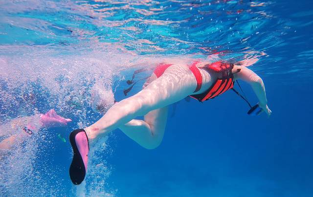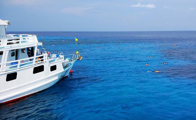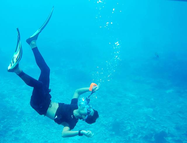8号岛拥有非常特别的岩石构造,清澈见底的海水和美丽的沙滩,岛附近的海域比较适合初学者。下了观景点上船绕个小弯,就在观景点下进行我们今天的第一次浮潜,这是一次适应性以熟悉浮潜为主的短时间体验潜,大约半个小时,戴上面罩,扑在海面上向下看,即使没有受过潜水训练,也绝对可以享受潜水观鱼的乐趣,水下有些珊瑚和小鱼。