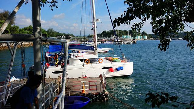 今天这艘双体帆船只有十个游客,配了四个船员和一个随船跟拍的摄影师,几乎是1:2的工作人员配比保证了今天的一日游服务质量不会差。问了一下中文导游,这艘双体帆船一般每天都有十几个游客,人数最多的时候可以接待二十几个人,没有接过十人以下的,今天算是人少的,感觉是运气不错赚到了有木有。