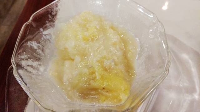 椰汁榴莲糯米饭榴莲味香浓口感偏甜,还配有一小块榴莲。